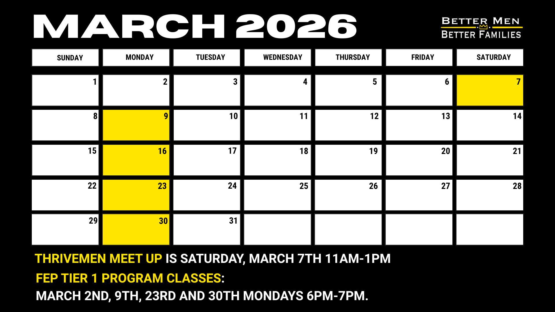 BetterMenBetterFamilies is proud to launch our first ThriveMEN event, designed to empower men to grow, connect, and thrive in every area of life.